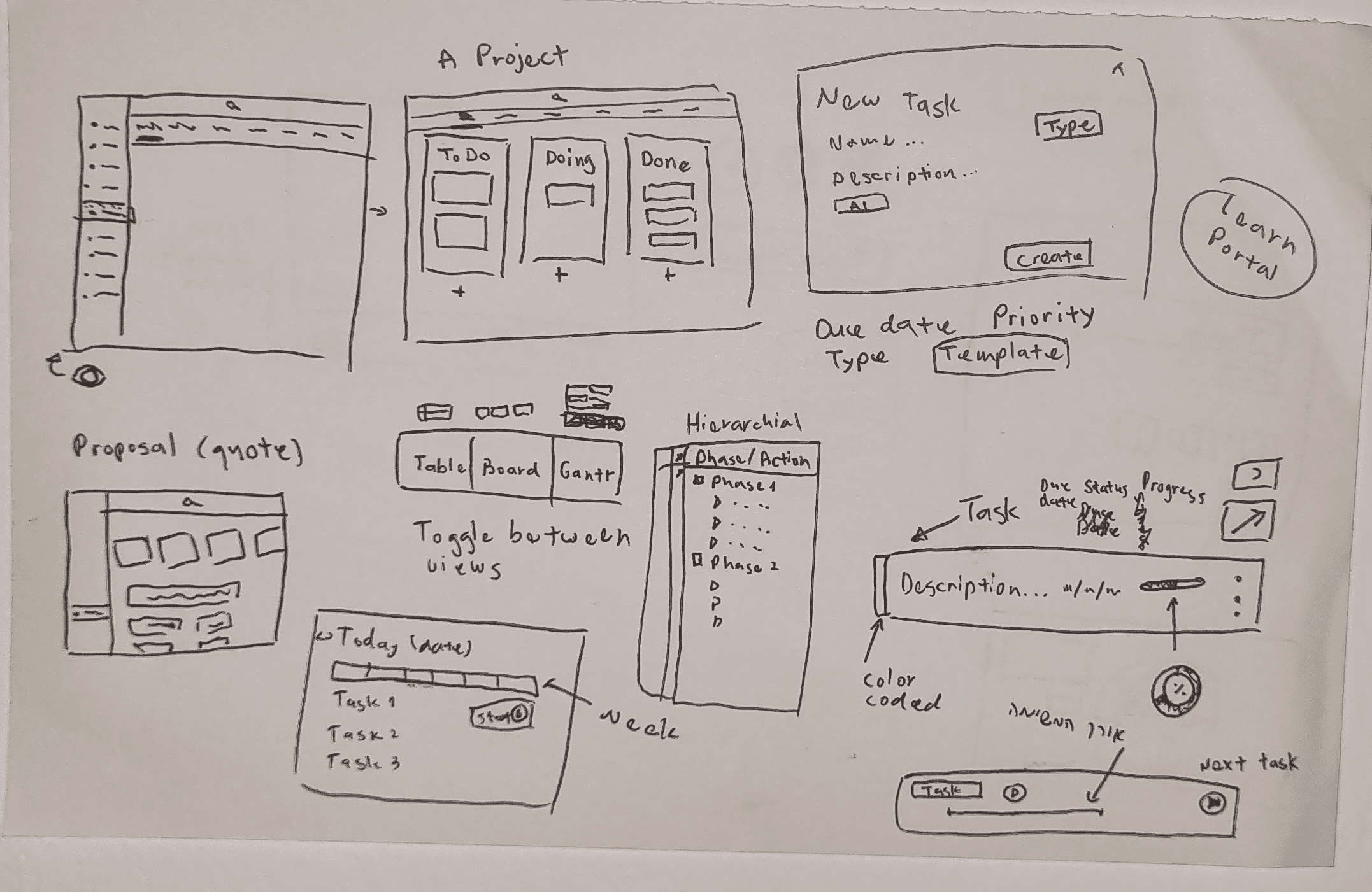 I analyzed existing tools and platforms to uncover gaps and opportunities in the market. This included evaluating direct competitors, such as Monday, Asana, and ClickUp, as well as indirect competitors and other useful tools like FreshBooks and Grammarly.