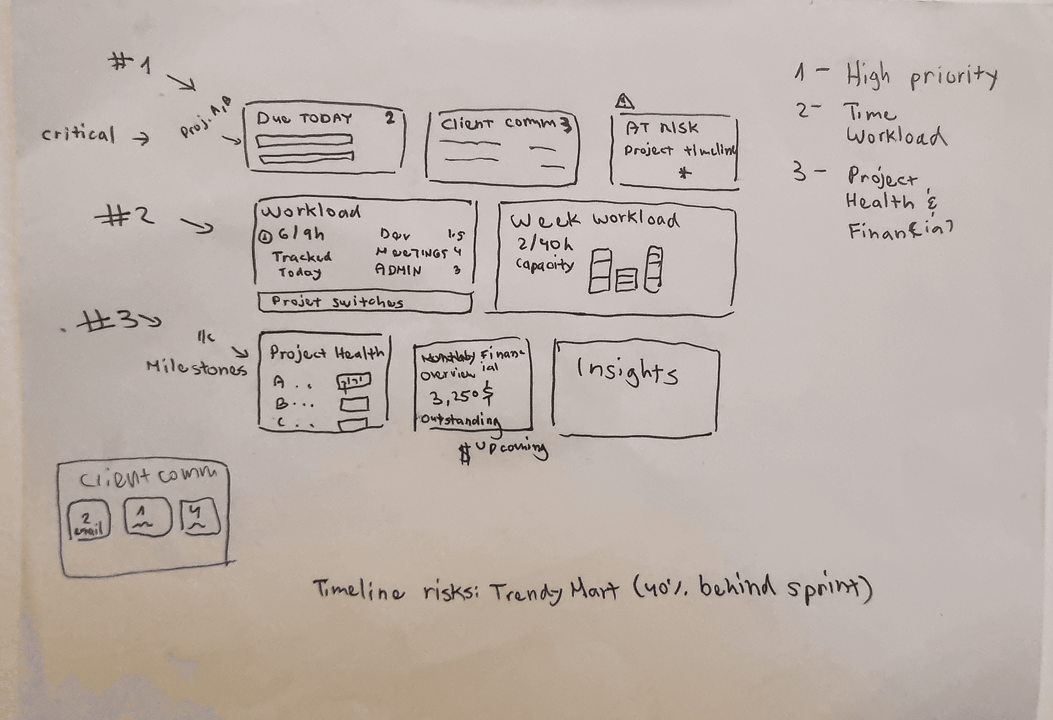 Working on this project deepened my understanding of freelancers' unique challenges, like balancing shifting priorities, managing client expectations, and dealing with the mental strain of fragmented tools. I learned how crucial it is to design solutions that simplify workflows while empowering users to feel in control.